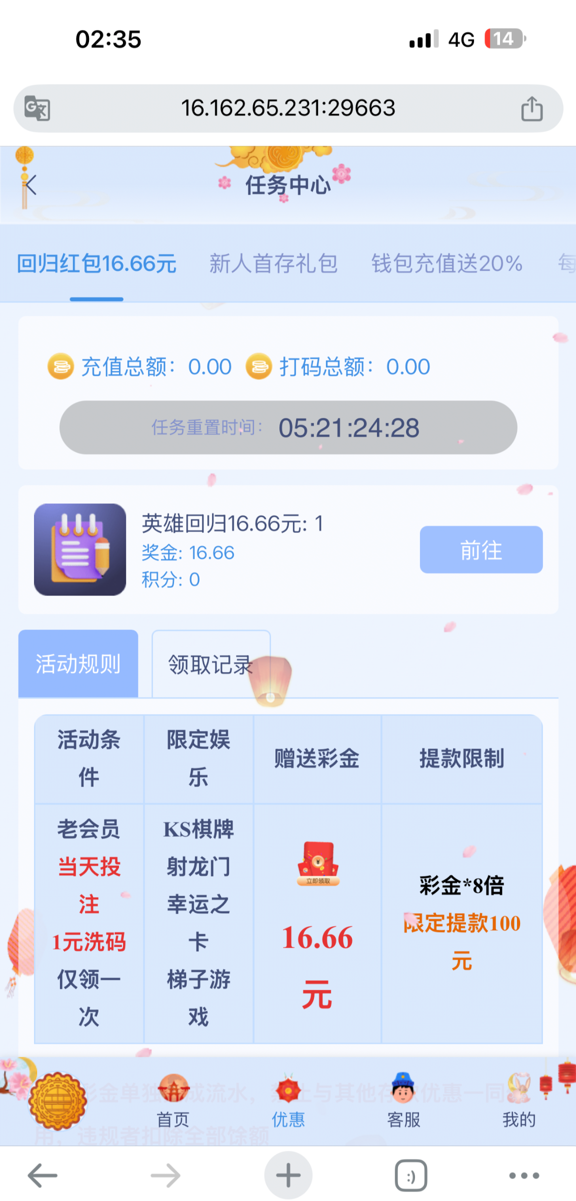 梦想回归彩金重置了,现在投注1又能领彩金了,之前玩过去去领下返水看看有没有1去投注然后领彩金 mt135.com