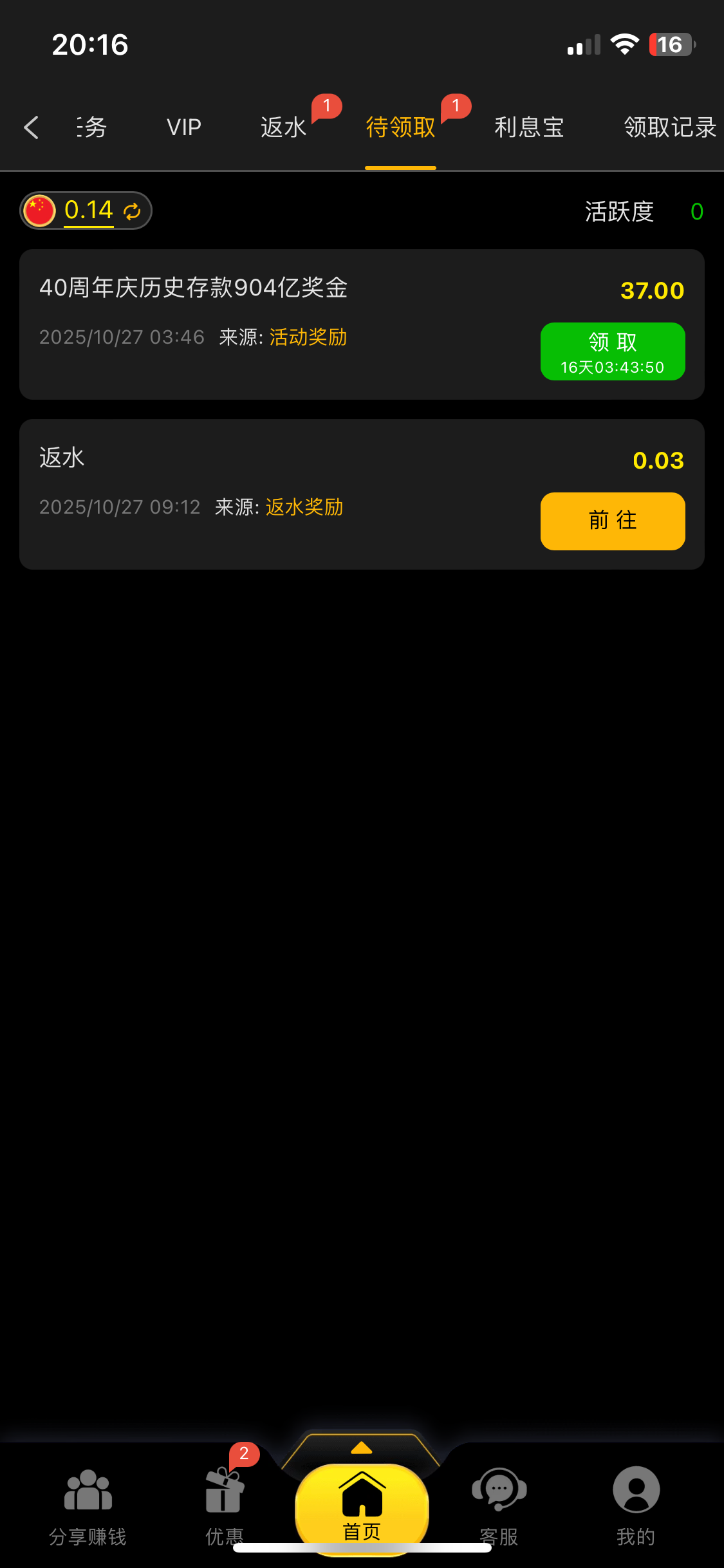 感谢,但是没充值过